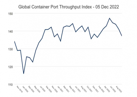 Drewry’s latest assessment - November 2022 The Drewry Global Port Throughput Index dropped to 141.5 points in September 2022, a reduction of 1.0% MoM and 1.6% YoY. With the ongo