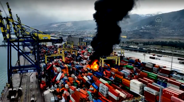 The earthquake struck southeast Turkey and parts of the Mediterranean coast on Feb. 6, disrupting port operations and collapsing a number of containers at the port of Iskenderun, according to Lloyd's List, an international shipping outlet. A container collapsed and caused a severe fire in Iskenderun, Turkey's largest port in the southern province of Hatay on the eastern Mediterranean coast, after Monday's massive earthquake, Reuters witnesses and video showed, sending plumes of black smoke high into the air.